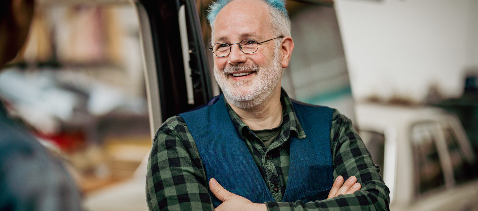 Jörgs hervorstechendste Eigenschaft erschließt sich einem schon sehr schnell: Er ist offen, kommunikativ und immer zu einem Scherz aufgelegt. „Ich dachte, ich mache es mir mal bequem“, grüßt er von der Ladefläche eines Transporters, dessen Innenausstattung er gerade einer Überholung unterzieht. Eine andere wichtige Facette seiner Persönlichkeit zeigt sich, wenn man sich dann in seiner Oldtimer-Werkstatt an der Moerser Straße umschaut: Jörg umgibt sich gern mit schönen, alten Autos – und er liebt das kreative Chaos. „Das Wörtchen ,Nein‘ gehört leider nicht zu meinem Wortschatz“, schmunzelt er leicht resigniert mit Blick auf einen alten Ford Capri, der hinter einigen alten Möbelstücken in einer Ecke der Halle unter einer Wolldecke schlummert. „Ein Freund fragte mich, ob er ihn für ein paar Wochen bei mir unterstellen könne. Seitdem sind vier Jahre vergangen.“ Ganz sicher hat der gute Geschmack des Freundes Jörgs Bereitschaft zur Gefälligkeit positiv beeinflusst: Wenn es um Autodesigns geht, um alte und neue Modelle, gerät der 55-Jährige schnell ins Fachsimpeln, Schwärmen und Philosophieren, streut auch schon einmal einen Exkurs zum Thema Industriehistorie ein: „Bloß nicht mitschreiben, das liest doch keiner“, winkt er lachend ab. Aber man erkennt in der Wissbegier, dem Bedürfnis, Zusammenhänge zu begreifen, und dem Blick fürs Detail, die in seinen Ausführungen zum Ausdruck kommen, auch das Fundament für die Vielzahl verschiedener Projekte, mit denen Enger Krefeld nun schon seit weit über zehn Jahren bereichert: Der Mann probiert gern neue Sachen aus.