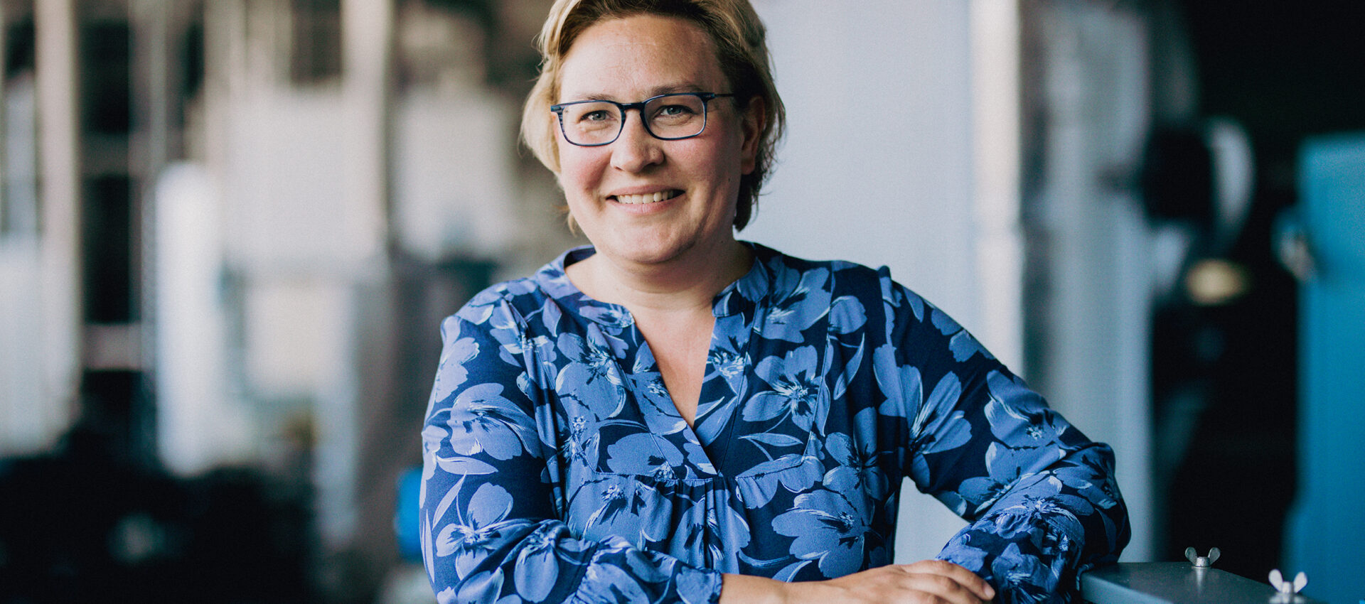 Um eine Vorstellung von den Dimensionen der Apparaturen zu bekommen, mit denen Dr. Kerstin Grönke zu tun hat, führt sie uns ins Technikum auf dem Betriebsgelände. Die beeindruckende Walzenmaschine – in der Fachsprache Kalander genannt – bezeichnet sie als „klein“; die Rolle der darauf verarbeiteten Fallschirmseide ist etwa zwei Meter breit. „Textilkalander sind mit drei bis vier Metern relativ schmal. Vliesstoffkalander mit bis zu sieben Metern und Papierkalander mit bis zu zehn Metern sind nochmal deutlich breiter. Da wiegt dann schon eine einzelne Walze mehrere Tonnen“, macht Grönke deutlich. Die diplomierte Verfahrenstechnikerin spricht mit spürbarer Begeisterung von den Metallkolossen, die die Krefelder Produktionsstätte in die ganze Welt liefert. Je nach eingesetzten Materialien und Endprodukt müssen die Kalander vielfach speziell für den jeweiligen Kunden angepasst werden – für Prototypen und Testschleifen ist dabei oft weder Zeit noch Geld übrig. Doch hat jede Maschine das Potenzial zur Weiterentwicklung und liefert gleichzeitig Erkenntnisse für zukünftige Projekte. In ihrer Position im Technical Product Management trägt Grönke deshalb die Erfahrungen der Zulieferer, der Produktion und der Anwender zusammen. „Ich begleite unsere Produkte in ihrem gesamten Lebenszyklus,“ schildert sie ihre Tätigkeit, „mit dem langfristigen Ziel, die Maschinen zu optimieren und ihre Produktion soweit möglich zu standardisieren, immer unter Berücksichtigung der Kundenanforderungen.“ In Anbetracht der oft jahrzehntelangen Einsatzzeiten ‚ihrer‘ Kalander eine Aufgabe, für die es Weitblick und langen Atem braucht.