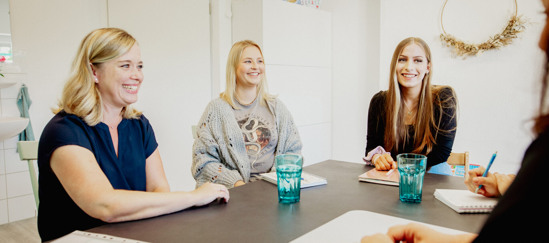 Bei allem Spaß an der Arbeit können Achten und Teimoorian ihre Aufgaben aber schon länger nicht mehr allein bewältigen, weshalb das Sprachschatz-Team auch um fünf Mitarbeiterinnen angewachsen ist. Mit an Bord sind inzwischen die staatlich anerkannte Logopädin Lisa Markert, die große Freude an der Arbeit im Bereich Kindersprache empfindet, und die Diplom-Sprachheilpädagogin Silke Vercoulen – mit Erfahrungen in der sprachtherapeutischen Behandlung von Akut-Patienten sowie mit der Betreuung von Förderschulen und integrativen Kindertagesstätten. Eine weitere Praxismitarbeiterin, Larissa Pfaff, ist seit 2022 staatlich anerkannte Logopädin. Auch ihr liegt die Therapie der Kindersprache besonders am Herzen. Zwei weitere Mitarbeiterinnen kümmern sich um die Anmeldung, empfangen die Patienten und vergeben Termine.