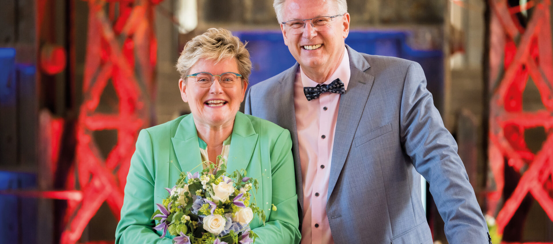 So präzise, wie sich der Augenoptiker-Meister in der hauseigenen Werkstatt um die Fertigung von Brillen und Kontaktlinsen kümmert, ist auch die Planung des Heiratsantrags bei der 100. Grünkohl & Pinkel-Show. „Ich habe Volker Diefes schon ein halbes Jahr vor dem Termin eingeweiht, dass ich Irina auf der Bühne einen Antrag machen möchte. Er war sofort begeistert und hat über passende Künstler nachgedacht. Gleichzeitig wies er darauf hin, dass die Antwort wegen der Überrumpelungssituation auch negativ ausfallen könnte.“ Das Risiko wird eingegangen: Vor 130 Gästen, davon allein 30 Freunde und Mitarbeiter des Paars, holt Kabarettist El Mago Masin die zwei aus dem Publikum und baut sie in sein Programm ein. „Dann ging es schon los“, berichtet die bis dahin nichtsahnende Handwerkerin, die sich in der Männerdomäne der orthopädischen Schuhtechnik durchgesetzt hat und neben Einlagen und Abrollhilfen vor allem perfekte Maßschuhe anbietet. „Ein Mitarbeiter reichte Jörg das Mikrofon, er ging auf die Knie und hat ohne Zögern eine freie Rede gehalten.“ Stolz und Rührung liegen in ihrer Stimme, selbst im YouTube-Video schwappen die Emotionen über. Zum Glück habe sie nicht „Nein“ gesagt, im Gegenteil: „Auf jeden Fall!“ ist laut und deutlich zu verstehen.