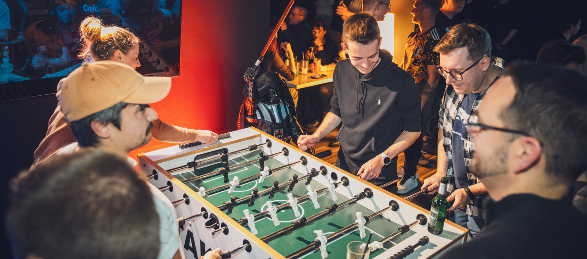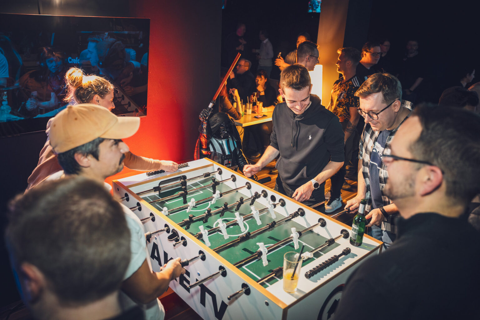 Ein wesentlicher Teil des Erfolgsrezepts der TaKe’s Bar sind Events. Ob Bingo, Bierpong oder andere Kneipensportdisziplinen. Die Bar-Gäste haben Spaß daran, in den fröhlichen Wettbewerb zu treten, was natürlich auch die Kommunikation fördert. „Gerade für die Jüngeren sind die Events ein wichtiger Grund, zu uns zu kommen. Der Altersdurchschnitt liegt so zwischen 20 und 40“, weiß Gehlen. „Bei manchen Angeboten, wie bei Bingo, sind aber auch immer einige Ältere an Bord. Wer an den verschiedenen Kneipenturnieren teilnimmt, kommt man fast automatisch ins Gespräch“, fährt er fort. „Wenn von der Bar eine Durchsage wie: ‚Jetzt spielt Team X gegen Team Y‘ kommt, findet man sich am Kickertisch oder vor der Dart-Scheibe ein, und der Spaß geht los!“