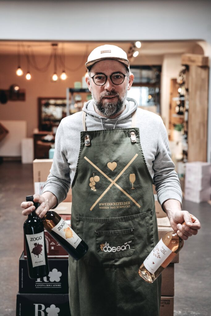 Denn de Cassans Weinhandel ist auch ein perfekter Ort, um stilvolle Weihnachtsgeschenke zu erwerben. Ob einzelne Flaschen oder hochwertige Weinpräsente und Geschenkkörbe ab ca. 20 Euro – zusammengestellt mit Weinen, Feinkost, Grappa, Ölen oder italienischen Süßigkeiten. Wer die Qual der Wahl seinen Lieben überlassen möchte, verschenkt einfach einen Wertgutschein, der auch bei Weinproben oder bei einem schönen Abend in der Weinbar einlösbar ist. Wenn man es selbst nicht nach Uerdingen schafft, bietet de Cassan einen Versandservice für die liebevoll zusammengestellten Präsente – ideal auch für Firmen. Um herauszufinden, welches Geschenk passt, kann man sich bei Fabian de Cassan und seinem Team beraten lassen. Etwas Besseres als langweilige Socken-Geschenke wird sich – getreu dem Motto: „Give wine not socks“ — auf jeden Fall finden lassen.