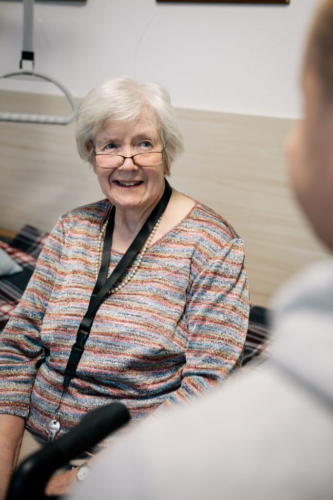 Renate Dreyer, 77, lebt seit Anfang des Jahres im Altenheim am Tiergarten. Vor knapp zwei Jahren verstarb ihr Mann Gisbert nach 42 Jahren Ehe plötzlich und unerwartet an einem Herzanfall und ließ sie allein zurück. Wenige Monate später erlitt die gebürtige Bockumerin erst einen Schlaganfall, der ihren linken Arm lähmte, dann schlug sie sich nach einem Sturz zu Hause den Kopf auf. Ihr wurde klar, dass sie in einem Seniorenheim fortan besser aufgehoben war. Bei kleinen Gängen ist sie auf einen Rollator angewiesen, ihr Zimmer verlässt sie nur mit Unterstützung und allein im Freien war sie schon lange nicht mehr. „Da fühle ich mich noch zu unsicher, ich möchte ja nicht wieder hinfallen“, gesteht die ehemalige Sekretärin und man hört die Frustration in ihrer Stimme. Geistig ist sie noch fit, aber ihr Körper spielt nicht mehr so mit, wie sie sich das wünscht. Einmal in der Woche bekommt sie Besuch von einem Physio- und einem Ergotherapeuten, aber sie haben jeweils nur 20 bis 30 Minuten Zeit für sie.
