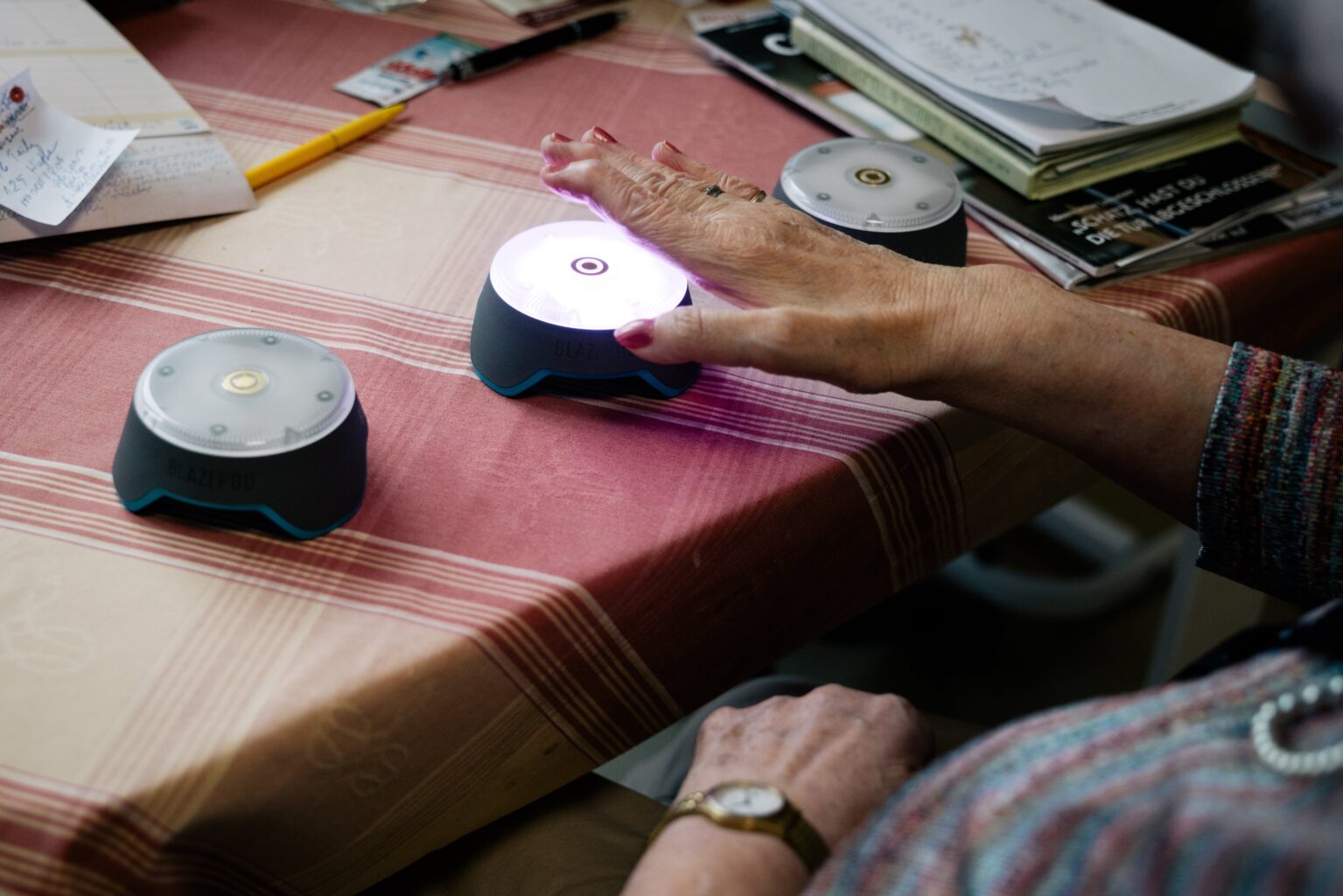 Mit Antippen auf die leuchtenden Sensoren zu reagieren, soll die motorischen Fähigkeiten verbessern und das Sturzrisiko mindern.