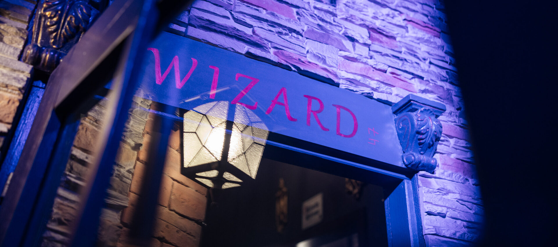 Zwischen der tristen menschlichen Welt mit leeren Schaufenstern und dem Reich der Magie liegen nur wenige Schritte. Und eine Klingelanlage, die wahrlich schon bessere Zeiten erlebt hat. Ist das vielleicht eine verborgene Prüfung, überhaupt den Eingang der Zauberschule in der Krefelder Innenstadt zu finden? Wir drücken auf einen weißen Klingelknopf mit der Aufschrift „Unter Verschluss“, wagen uns durchs Treppenhaus des ehemaligen Bürogebäudes in die erste Etage – und sind verblüfft. Denn kaum durch die Tür, vergisst man die Realität, so fantasievoll sind die Räume gestaltet. Im Hintergrund läuft leise, fast verwunschen klingende Musik, während wir auf Reihen von bunten Hexenbesen und geheimnisvolle Flaschen mit undefinierbaren Flüssigkeiten blicken. „Nur die Magier dürfen hindurch“, sagt Nicolai Bortmann verschmitzt und lächelt. Er hat das innovative Konzept entwickelt, während Ehefrau Irina für die unglaublich detailverliebte Einrichtung verantwortlich zeichnet.