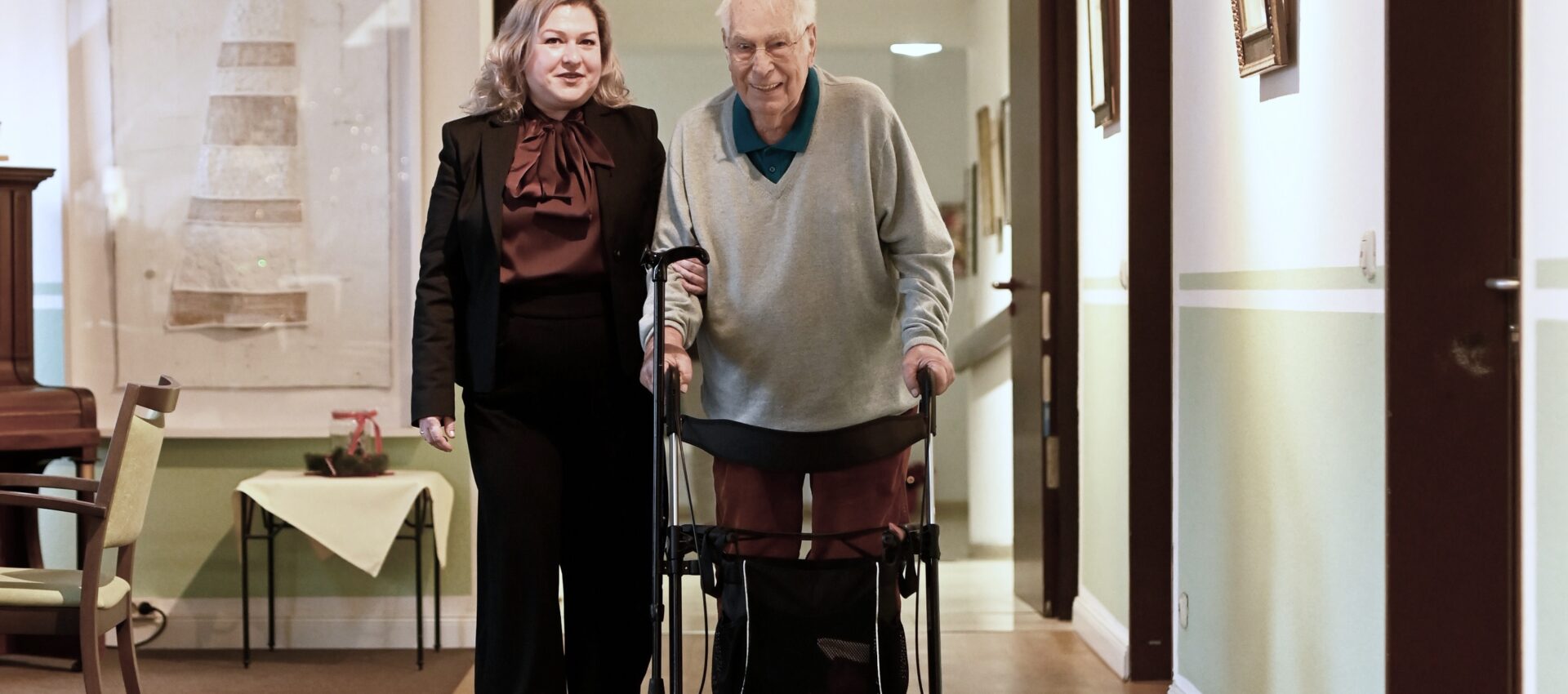 Maja Cugelj strahlt, während sie Albrecht Pick am Arm nimmt und durchs Foyer des Hanseanum führt. Die Pflegedienstleiterin der Krefelder Seniorenresidenz fühlt sich für jeden der rund 120 Bewohnerinnen und Bewohner persönlich verantwortlich. Mit ihrem Team decken die durchweg examinierten Pflegekräfte sämtliche Anforderungen ab, die ältere Menschen brauchen, um ein sicheres und komfortables Leben im Betreuten Wohnen führen zu können.