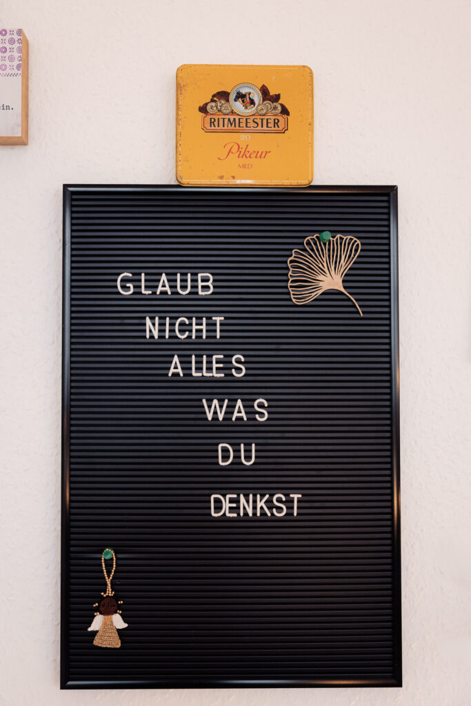 Schon die pinkfarbene Beschriftung „Du bist willkommen!“ neben Klingel und Kamera macht deutlich, dass die zweite Etage der Nordstraße 30 ein sicherer Ort sein soll, an dem Frauen Beratung und Unterstützung finden. Bunte Bilderrahmen mit Sprüchen wie „Ich darf mir selbst vertrauen!“ und „Ich darf Fehler machen!“ und ein Zettel mit Komplimenten zum Abreißen geben die notwendige Kraft, die in den meisten Situationen auch dringend benötigt wird. Tanja Heier empfängt uns mit einem Händedruck, der ihre sportliche Vergangenheit als Basketballerin in der 2. Bundesliga verrät, und strahlt eine tiefe Ruhe aus, die sich rasch überträgt. „Es geht hier nicht nur um Gewalt“, beschwichtigt die Vorständin der Frauenberatung zunächst. „Wir beraten und informieren kostenlos und anonym zu einer breiten Palette an Themen, die junge Mädchen und Frauen betreffen. Ein Problem reicht, das ist die Eintrittskarte!“