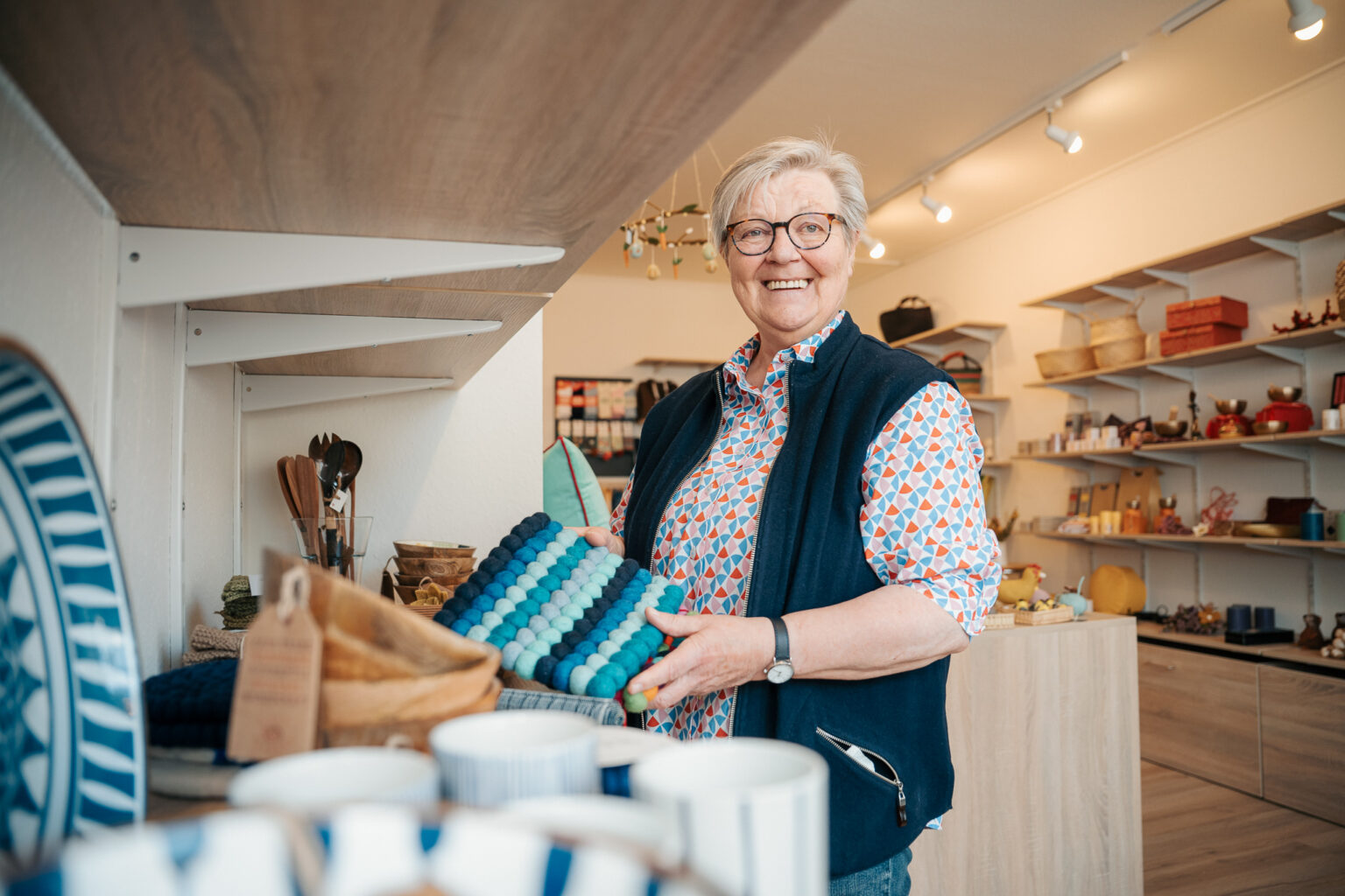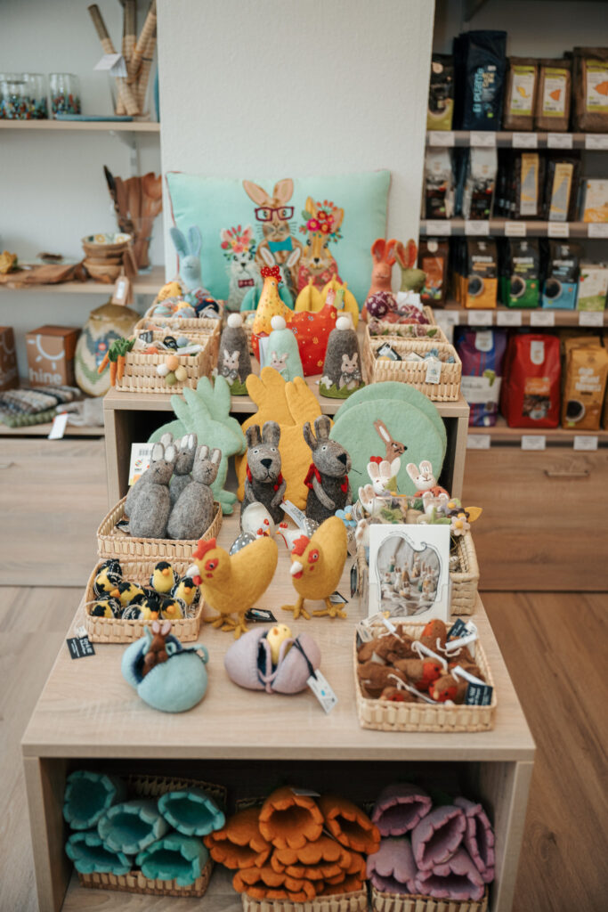 Für Christa Redeker steckt hinter all dem mehr als nur ein schönes Sortiment. „Fairer Handel bedeutet für uns, dass Menschen die Chance bekommen, würdevoll zu leben und ihre Zukunft selbst zu gestalten“, sagt sie. „Es geht um faire Preise, Austausch auf Augenhöhe und langfristige Partnerschaften – und auch darum, Frauen zu stärken.“ Im Sortiment fi nden sich ausschließlich zertifizierte, fair gehandelte Waren aus Kambodscha, Südafrika, Nepal, Kenia und weiteren Ländern. Regale mit Lebensmitteln, Dekoartikeln und Kleidung laden zum Stöbern ein. Neben Klassikern wie den bunten, handgeflochtenen Bolga-Körben entdeckt man besondere Schätze – etwa handgefilzte Osteranhänger oder Taschen aus recycelten Moskitonetzen.