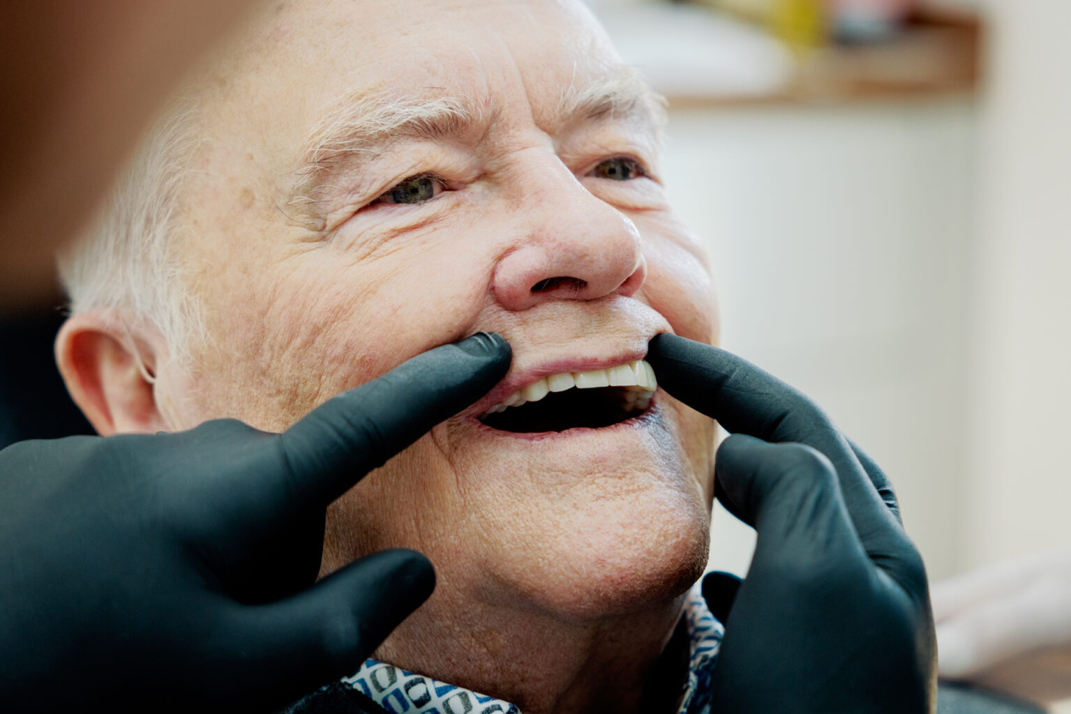 Dietrich Blinten strahlt über das ganze Gesicht. Er freut sich schon auf das Mittagessen, sein Leibgericht, Gulasch mit Klößen, eine Spezialität seiner Schwägerin, das er nun endlich wieder sorgenfrei genießen kann. „Ich bin Prof. Dr. Müllejans so dankbar“, sagt er. „Der hat das sehr gut gemacht!“ Anders als sein voriger Zahnarzt: Die Behandlung verlief chaotisch und das Resultat war eine wacklige, schlecht sitzende Prothese, die immer wieder aus der Verankerung rutschte. „Nach jedem Essen musste ich sie rausnehmen, saubermachen und neu kleben. Das war so lästig“, erinnert sich der Rentner.