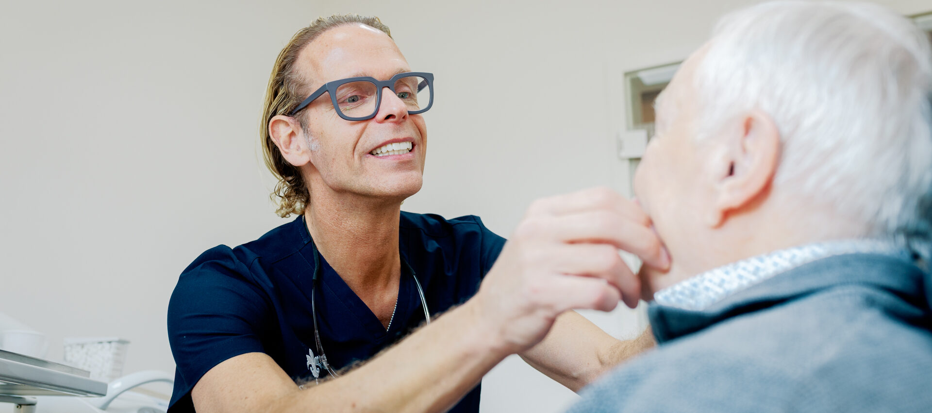 Dietrich Blinten ist kein Einzelfall. Zu den alle zwei Monate in der Stadtwald Klinik stattfindenden Infoveranstaltungen erscheinen immer wieder Menschen, die ein einziger, sehnlicher Wunsch antreibt: Endlich wieder Ruhe mit den Zähnen zu haben. „Ich möchte ihnen eine Versorgung geben, die für den Rest ihres Lebens hält“, erläutert Müllejans seine Motivation. Sehr genau hört er sich die oft Jahrzehnte andauernden Leidensgeschichten an, lauscht den verschiedenen Wünschen und Bedürfnissen, untersucht den Ist-Zustand — und macht auf dieser Grundlage passende, tragfähige und medizinisch sinnvolle Lösungsvorschläge. „Ich muss die Mannschaft ermitteln, die zukünftig auf dem Platz stehen wird“, greift er schmunzelnd auf eine Sportmetapher zurück. Oder weniger fantasievoll formuliert: Welche Zähne dürfen bleiben, welche müssen vielleicht gehen — und wie werden sie ersetzt? „Manche Patienten möchten ihre echten Zähne um jeden Preis behalten. Unser Ziel ist es, den optimalen Weg zu finden, um den Eingriff so schonend wie möglich zu gestalten und eine wirklich langfristig gute Versorgung zu gewährleisten“, weiß Müllejans. Das Budget ist ebenfalls ein Faktor: „Herausnehmbare Versorgungen sind günstiger als fest sitzende, auch beim Material gibt es Einsparoptionen. Das ermöglicht es uns, im Rahmen der finanziellen Möglichkeiten zu bleiben.“