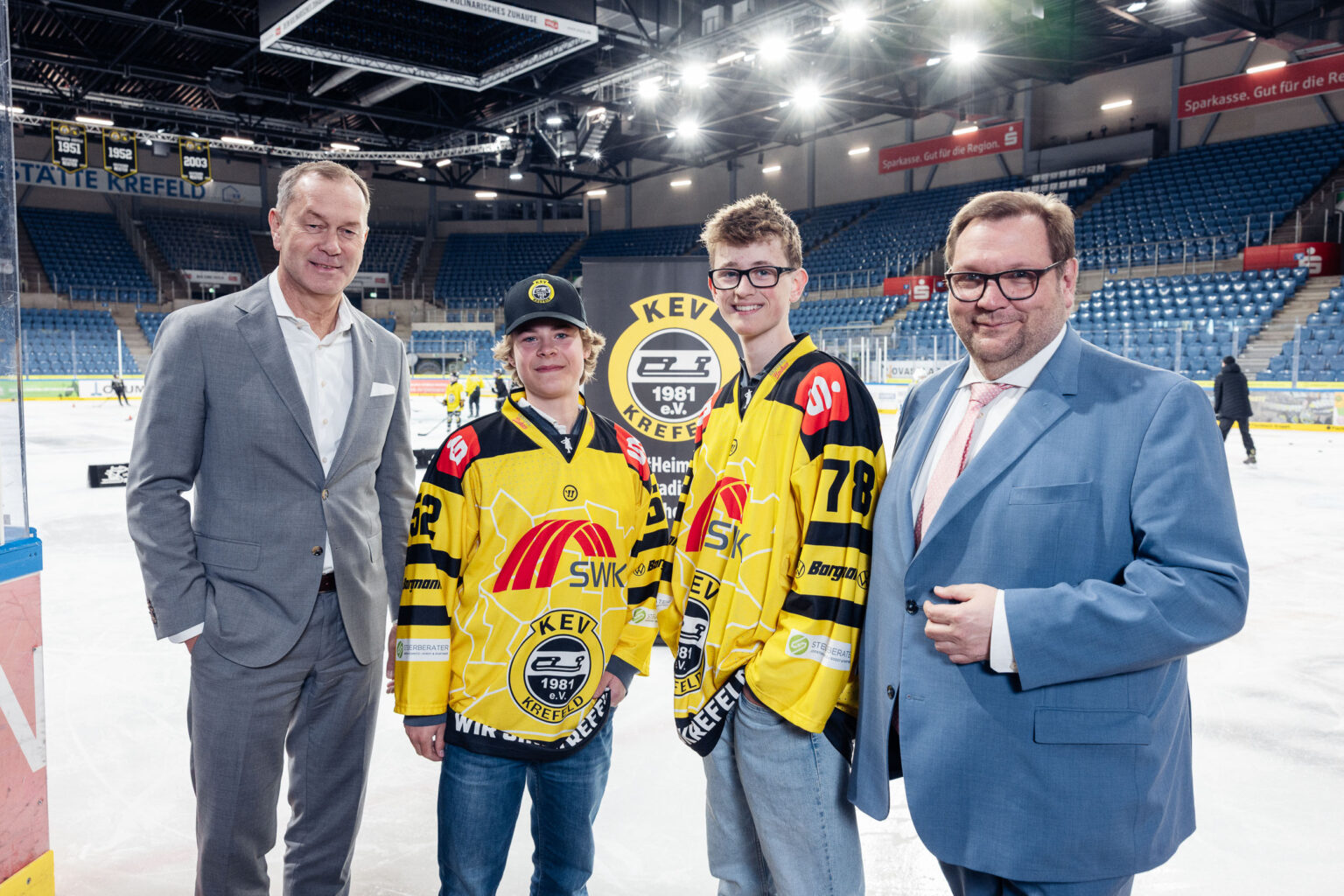 Möglich wird dieser Weg auch durch starke und verlässliche Partner. Die Sparkasse Krefeld begleitet den Krefelder Nachwuchs seit vielen Jahren. Diese kontinuierliche Unterstützung gibt dem Verein Stabilität, Planungssicherheit und Rückenwind – insbesondere mit Blick auf kommende olympische Zyklen und die Weiterentwicklung des Eishockey-Standorts. „Krefeld ist eine Eishockeystadt, und wir als Sparkasse unterstützen die wichtige Jugendarbeit des KEV 81“, sagt Sparkassen-Vorstand Stefan Grunwald. „Neben den Krefeld Pinguinen, die von der guten Jugendarbeit des KEV 81 profitieren, freuen wir uns besonders mit Tim Stützle, der in diesem Jahr als Eigengewächs aus dem Krefelder Nachwuchs bei den Olympischen Spielen dabei war.“ Die Förderung des Sports in der Region liege der Sparkasse sehr am Herzen – „und wir sind stolz, wenn wir durch unsere Partnerschaft Sportlerinnen und Sportler auf ihrem Weg unterstützen können“.